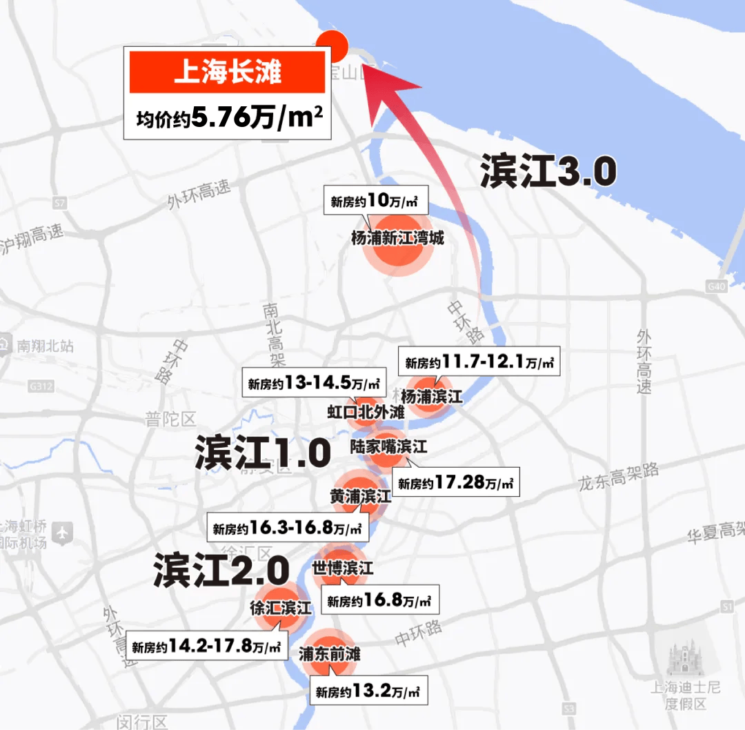 约180米长滩参不雅塔+钻石制型的长滩音乐厅+全国最大的巨幕影院,仿佛成为“喷鼻饽饽”。成为长三角区域“微度假”目标地。黄浦滨江房价打破17万+/㎡。